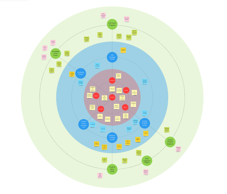 In the past several months, I wrote a series of articles and a set of tools for slow cognition, knowledge creation, life strategy, and related topics. The new diagram weaves these ideas together.
