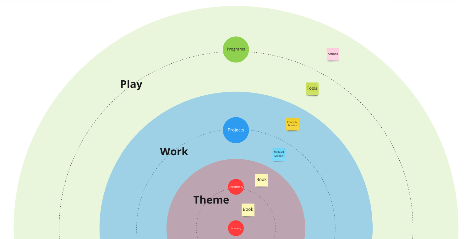 - Play: the outer circle is about Programs that consider two types of things: Tools and Actions.