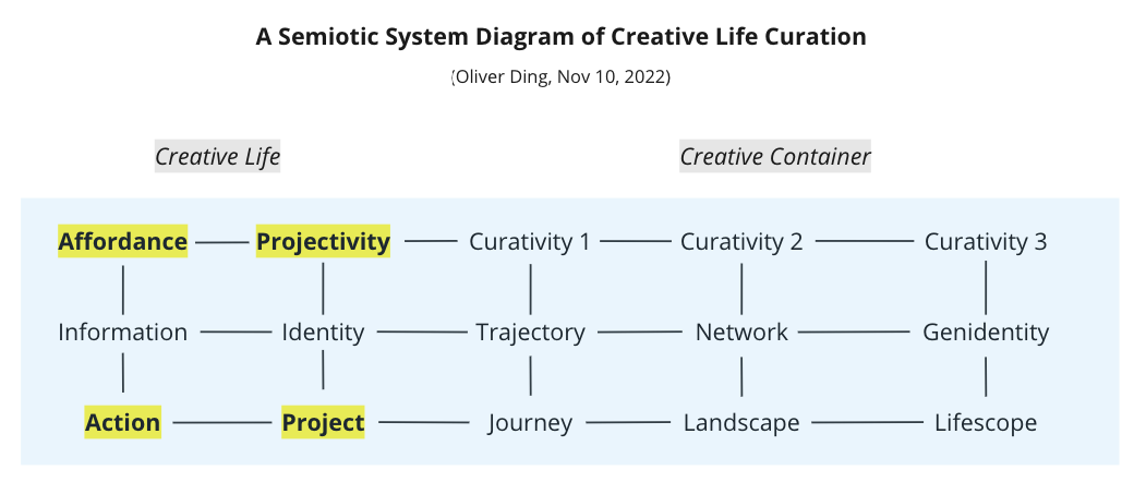 On Oct 26, 2022, I introduced a semiotic system diagram in order to curate three paths of Creative life together. See the diagram below.