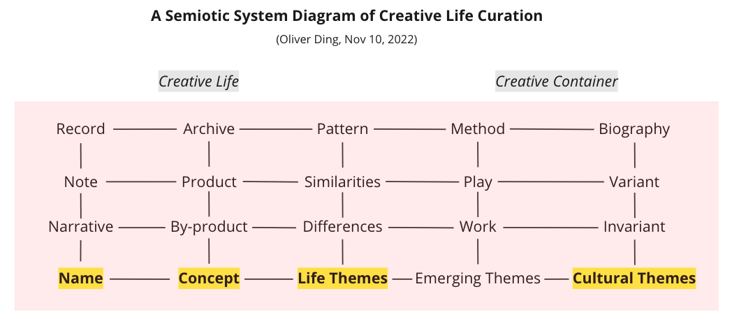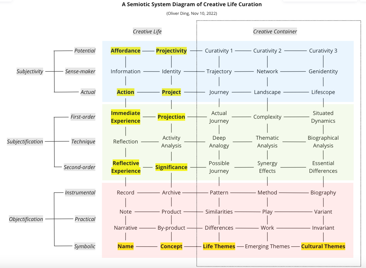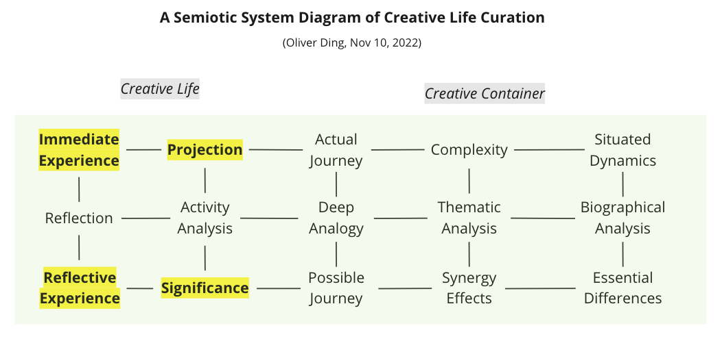 Today I will introduce a new semiotic system diagram that expands the above diagram and offers more details of the Creative Life Curation framework.