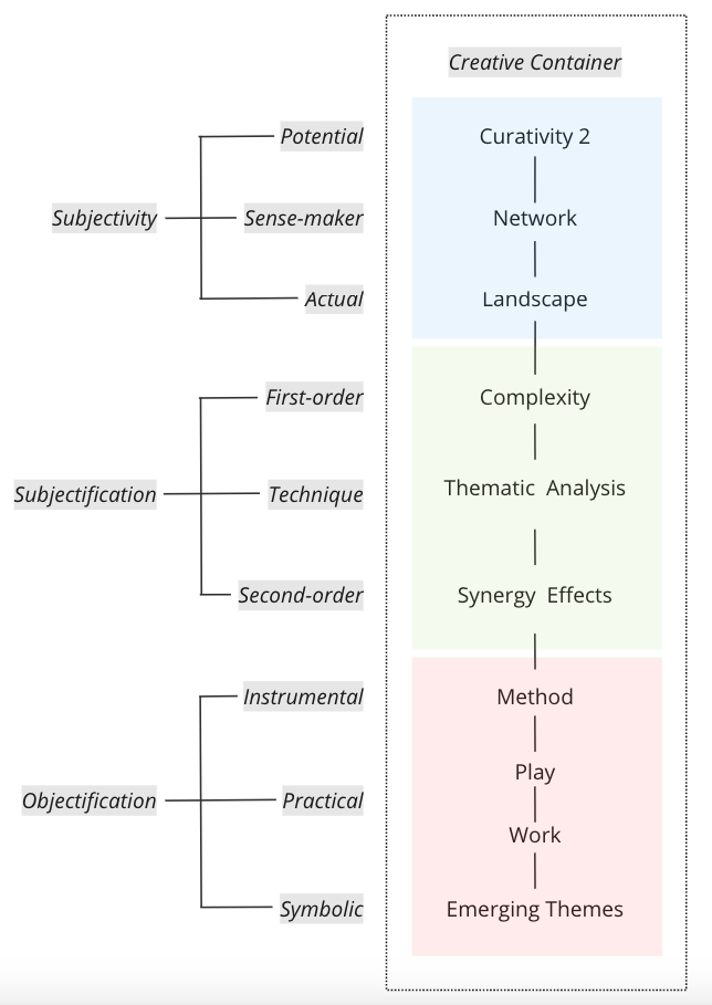 How does a creator or curator perceive Potential Action Opportunities? They rely on Sense-makers. Thus, the part of Subjectivity is organized with the following three ideas: Potential - Sense-maker - Actual.