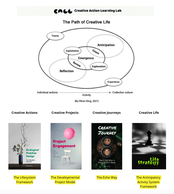 In 2019, I founded Creative Action Learning Lab (CALL) as an independent research project. Its keyword is Creative Action and it refers to my approach to creativity research: the “Process as Product” approach. You can find more details in The NICE Way and Creative Actions.