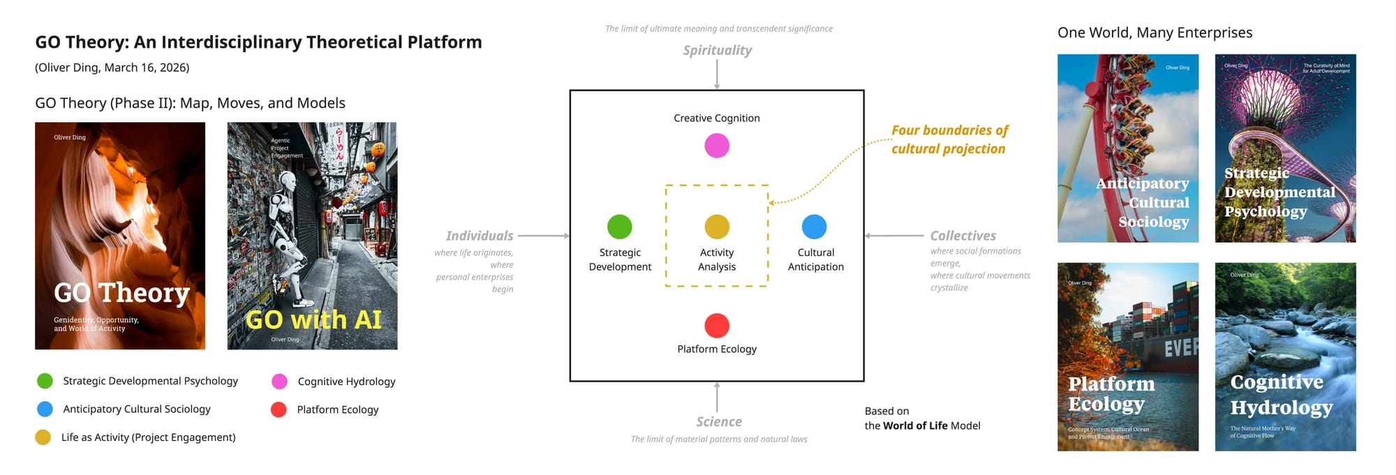 I did not plan it this way. But looking back, it is now clear: ACS is actually Phase II of GO Theory. The third goal set in October 2024 — moving into cultural development — is now being pursued in earnest. The vocabulary is the same: Genidentity, Opportunity, World of Activity. But the container has expanded. The question is no longer only how a creative individual develops within their life course. It is how cultural enterprises develop within the World of Life.