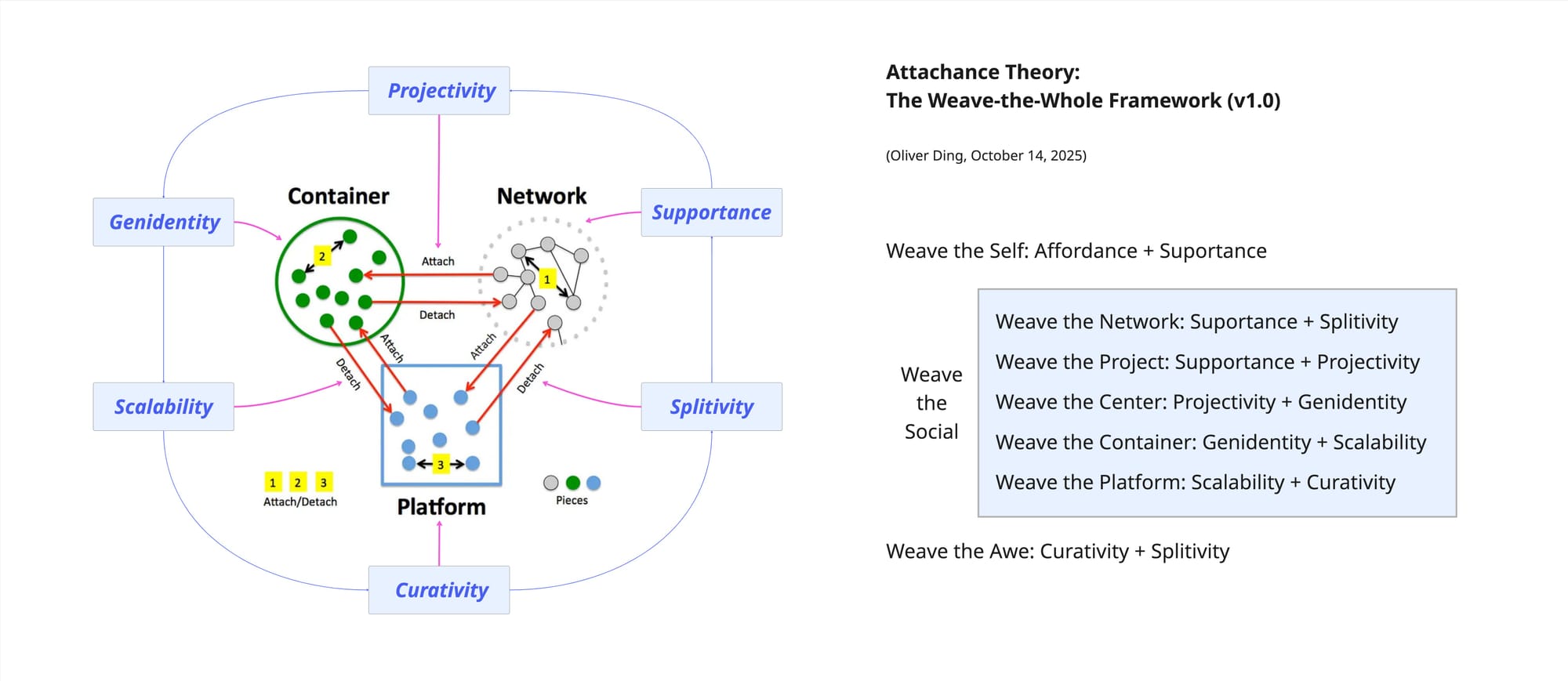 On October 10, 2025, I published an article titled [Meta-framework] The “Weave” Basic Form, which became the new focus of my creative flow within the past several days. For example, on October 14, I used it to develop the Weave-the-Whole framework for Attachance Theory.