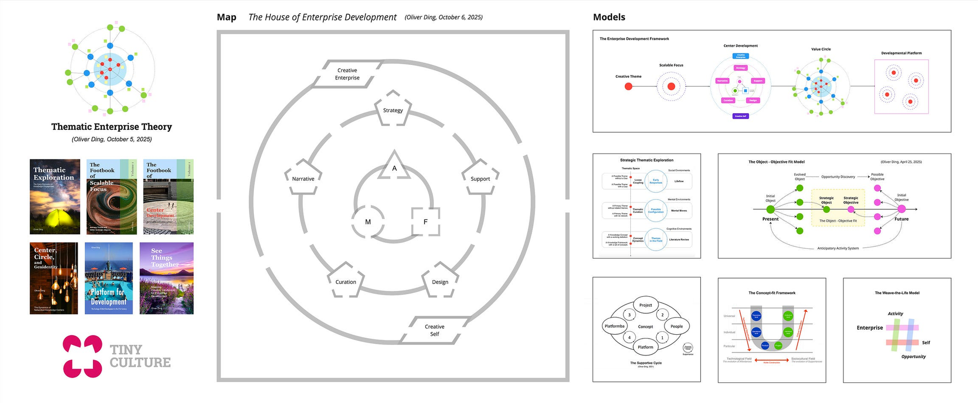 To further emphasize this shift, I decided to design a new knowledge center called Tiny Culture Center to host the Thematic Enterprise Theory. Although the theory covers both knowledge enterprises, cultural enterprises, and business cultural enterprises, I selected cultural enterprises as the primary focus of my next creative journey.