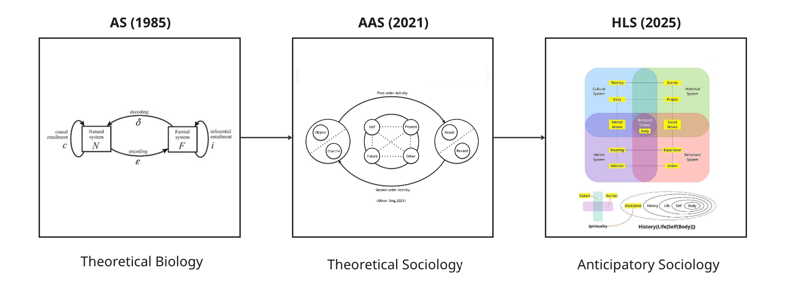 In 2021, drawing on Rosen’s distinctions and ideas from Activity Theory, I developed the Anticipatory Activity System (AAS) to understand adult life development. Later, in 2024, I developed the HLS framework, which conceptualizes the social world as a nested Anticipatory Activity System (AAS):