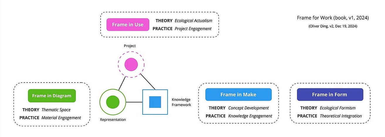 The diagram above is the outcome of a tiny knowledge curation project. Based on the Thematic Matrix Canvas I created in 2022, I reflected on four perspectives presented in my 2024 book draft, Frame for Work: Knowledge Frameworks, Predictive Models, and World of Activity, and connected these perspectives with my newest ideas.