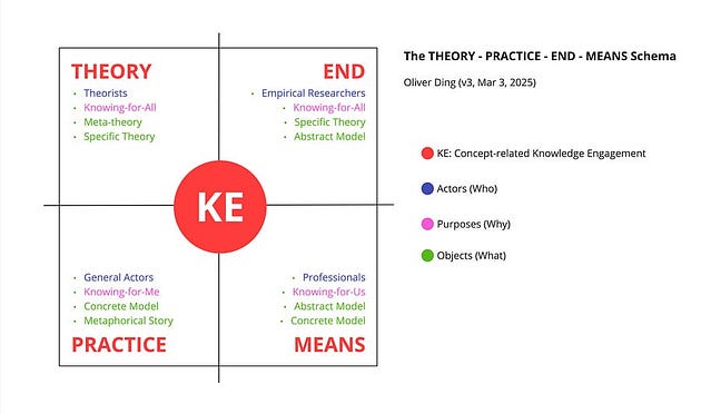 There is a deep mapping between the “Theory-Practice-End-Means” schema and the “Ideation — Validation — Application — Reflection” schema: