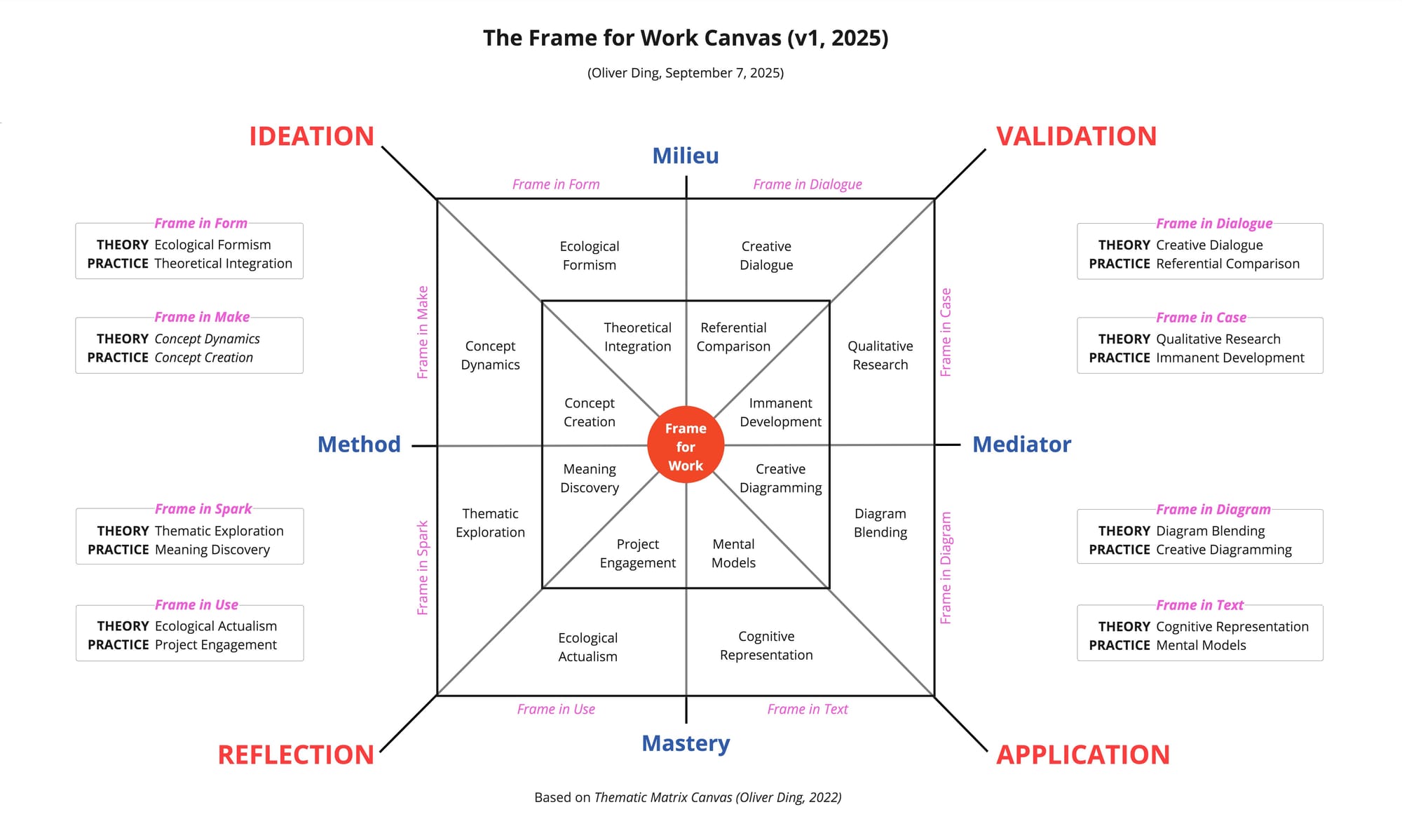The new canvas goes beyond the original focus of the 2024 book — Knowledge Frameworks — and extends the metaphor of the “Frame” to a broader object: Cultural Frameworks. This expansion aligns with my shift from Knowledge Engagement to Cultural Innovation, a key transition I made in late 2024 and early 2025.