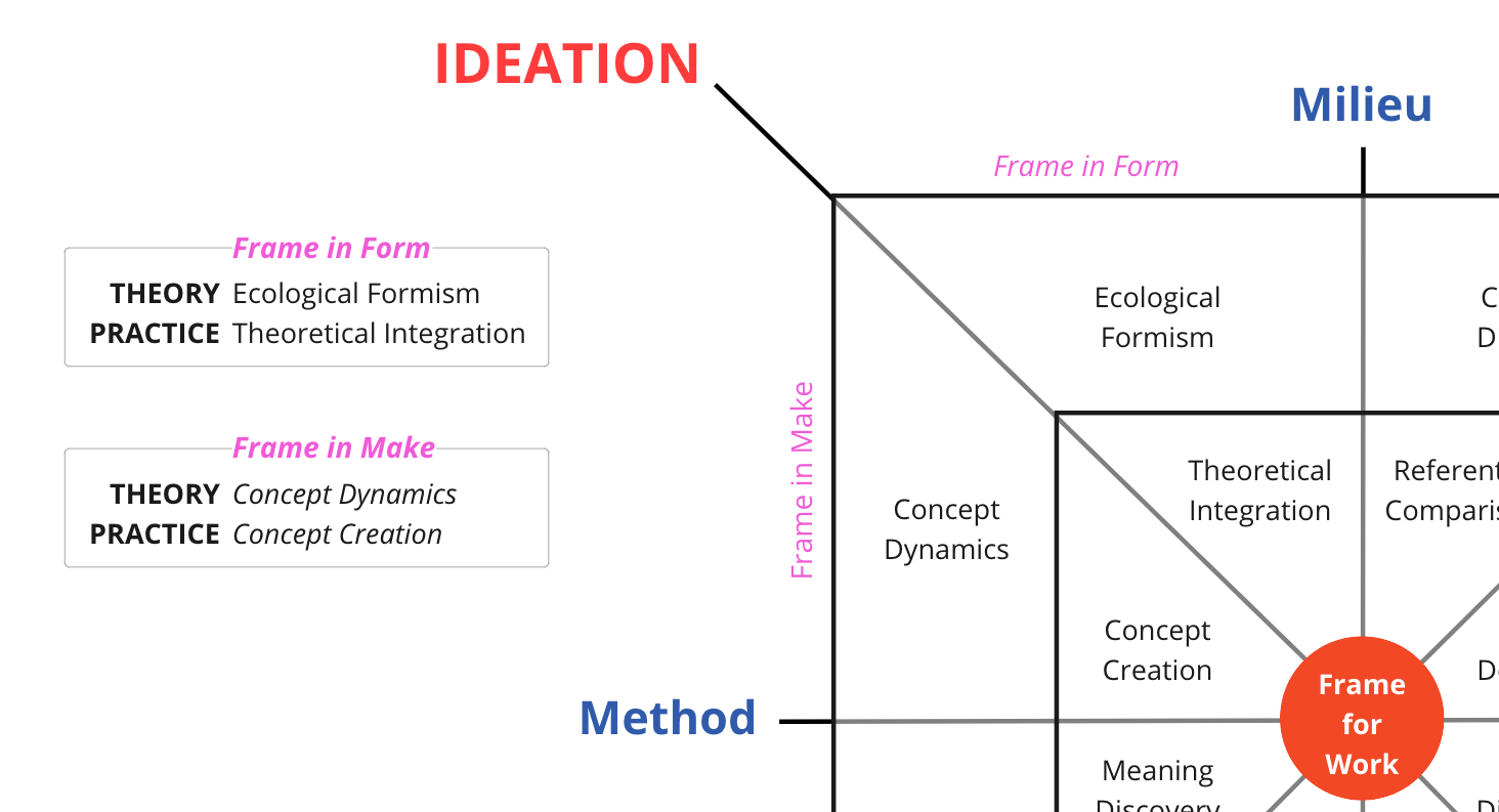 In the IDEATION thematic area, the Frame-in-Make perspective refers to developing a cultural concept as the core of a cultural framework. I refer to this type of practice as Concept Creation, while a corresponding theoretical resource is the Concept Dynamics Theory.
