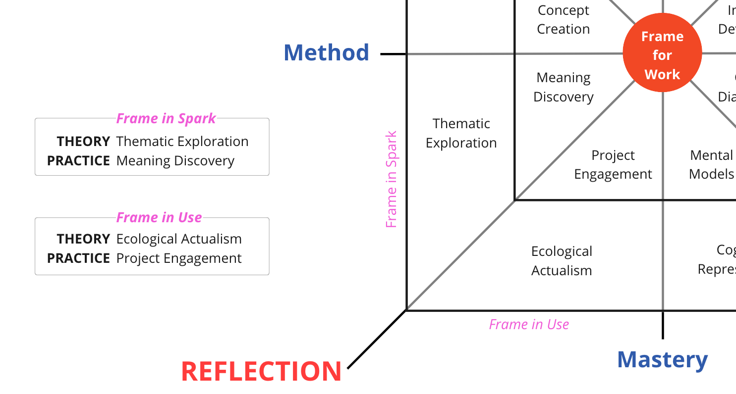 In the REFLECTION thematic space, the individual actor's experience becomes the primary focus. The Frame-in-Use perspective highlights the Project Engagement practice, in which a cultural framework is embedded in actual projects. The corresponding theoretical resource is the Ecological Actualism framework.