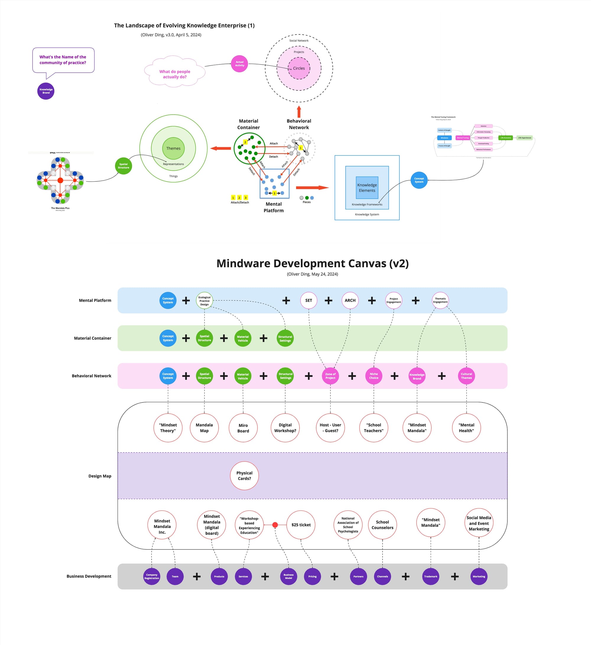 In 2024, this theoretical model was applied to a concrete design project—combining a psychological assessment software's concept system with a meta-diagram to create a board game. The key insight: "If we attach the Concept System to the Spatial Structure, we get the core of a mindware." This practical experience was then systematized into the Mindware Development Method and Canvas (May 2024).