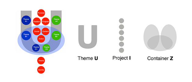 The Theme U diagram presents six themes in a U shape. Theme U is not only about six themes but also about representing complex thematic relationships with spatial mediation—for example, to explain Pairs of Opposite Themes.