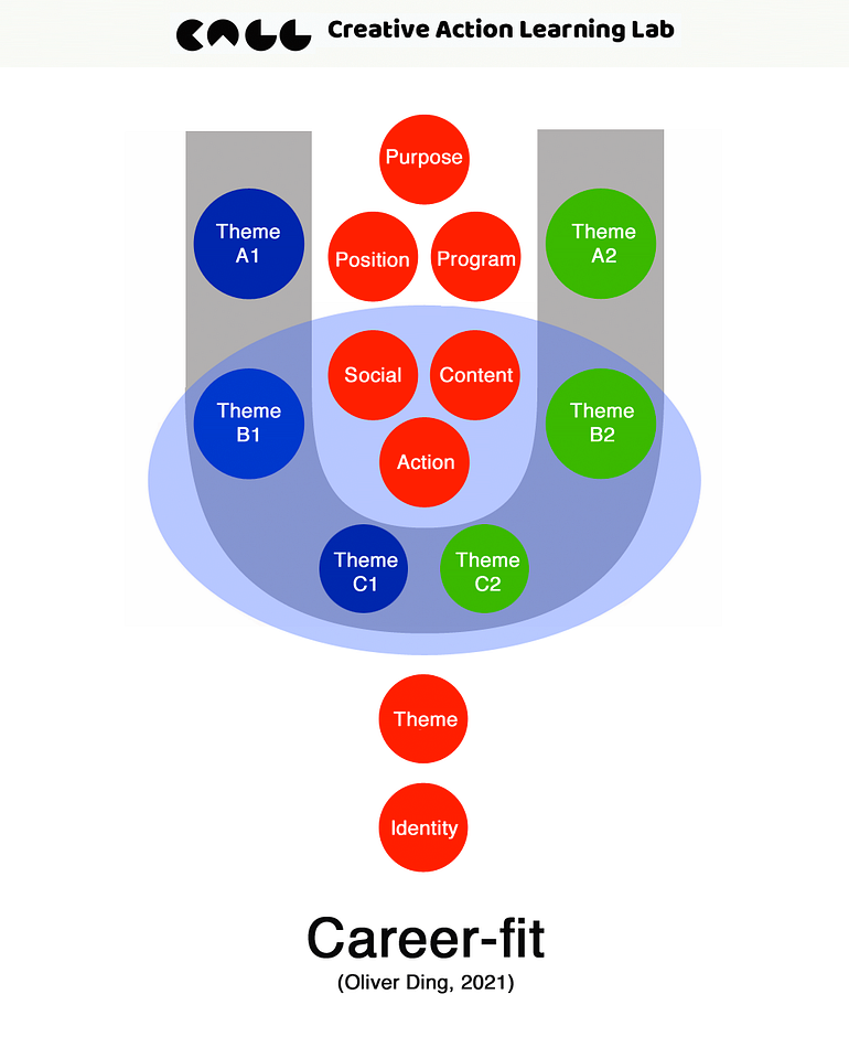 This resulting diagram can be viewed as “an ecological approach” to career development, as it reflects the structure of “organism (personal career themes) — action (fitting) — environment (impact projects).”
