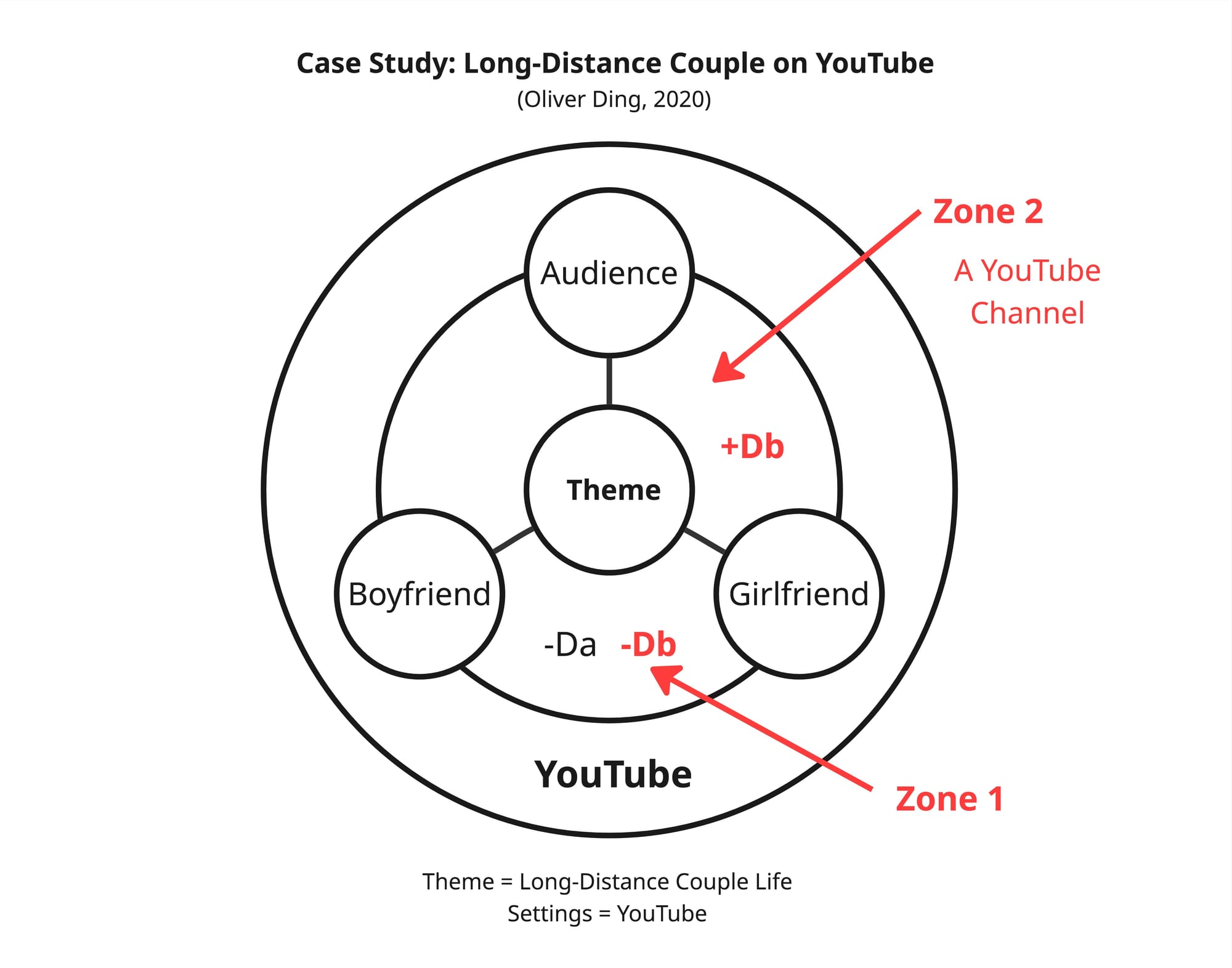 Camp analysis can be applied not only to physical environment interpersonal interactions but also to digital environment interpersonal interactions. The diagram below illustrates the "Long-Distance Couple on YouTube" case.