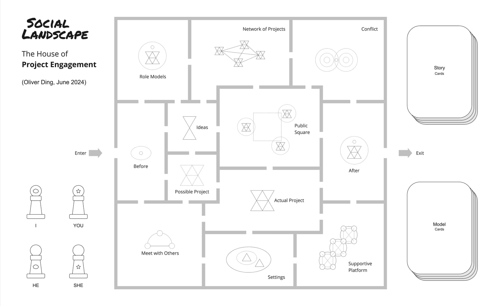 By providing systematic tools for mapping and analyzing tripartite relationships, the Ecological Camp Framework can serve as an additional analytical framework within the Project Engagement family, bridging the gap between individual project roles and larger network structures.