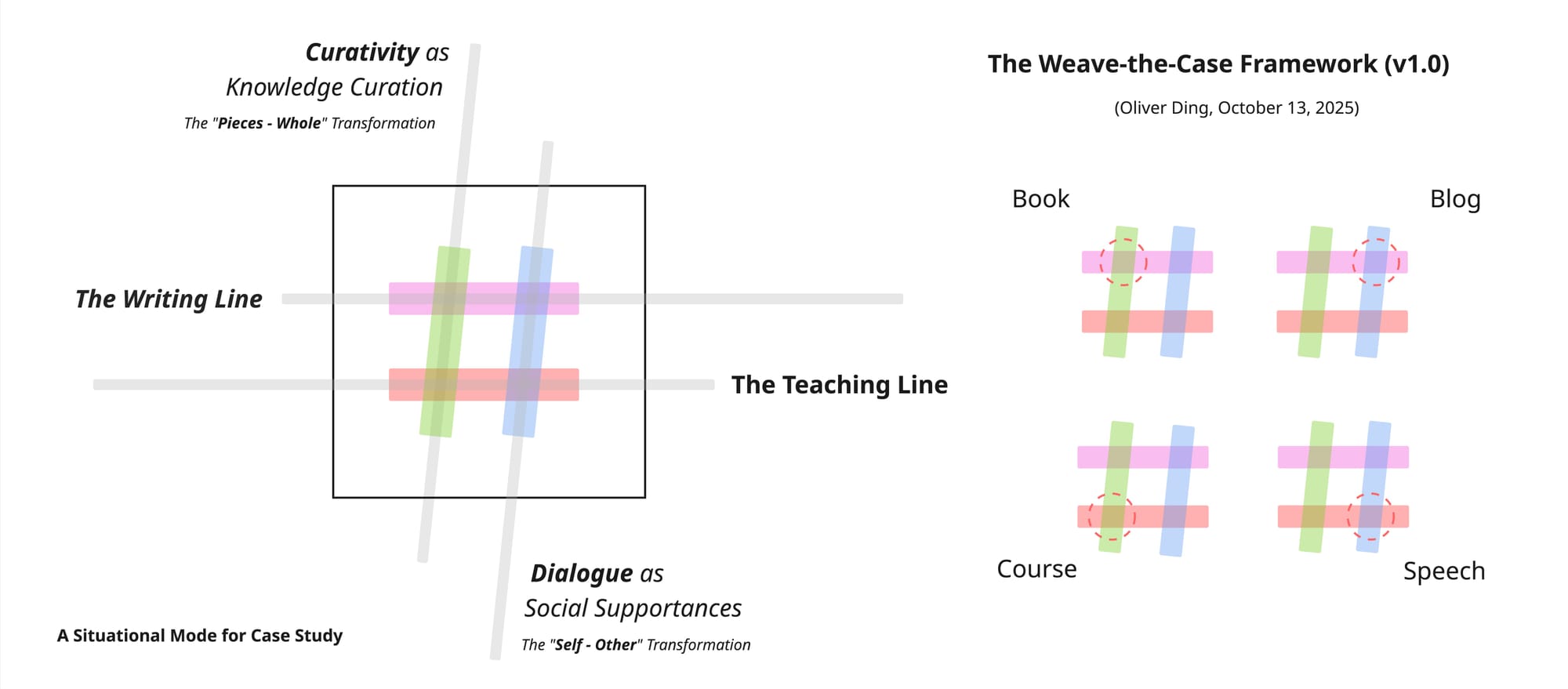 Each weave-point represents a concrete expression of the creative life. The Book reflects the development of ideas and theoretical contributions; the Blog captures ongoing reflections and public engagement; the Course embodies structured teaching and knowledge transmission; and the Speech highlights interactive dialogue with broader communities. Together, these weave-points illustrate how the “Social Science Frame Dialogue” theme weaves individual creative activity with social and scholarly interactions. For further details on this theme, see TALE: The Theme of “Social Science Frame Dialogue.”
