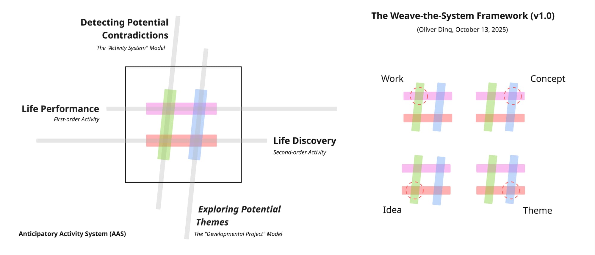 Although the framework currently presents only three diagrams, its underlying method, together with the Weave Basic Form, provides an open yet systematic approach for exploring Life as Activity.