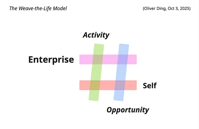 Inspired by the early experiments with the Weave Diagram, I developed the Weave-the-Life Model on October 3, 2025 (see diagram below).
