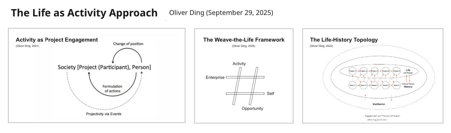 - The Weave-the-Life framework bridges Activity as Project Engagement and Life-History Topology, explaining how the former unfolds into the latter.