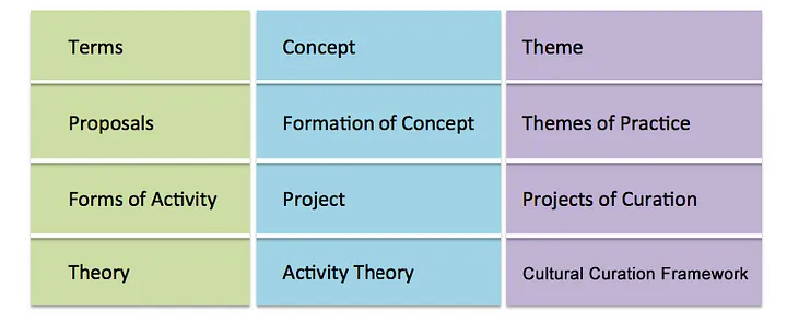 While the Create-Curate-Weave schema was created as part of the World of Activity toolkit — a sub-framework of Creative Life Theory (v3.0) — the Weave-the-Life model was developed as a sub-framework of the Life-as-Activity approach, itself inspired by Activity Theory.