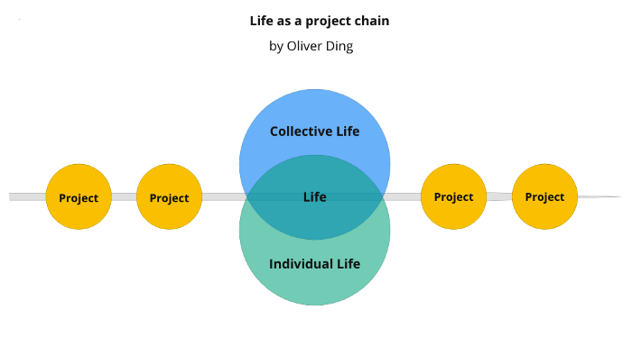 In this light, the concept of Life can be understood as both Collective Life and Individual Life. The concept of Project provides a way to make sense of both. A person’s real life is a set of concrete actions, and the notion of Project offers a way to curate and integrate these actions. Likewise, Collective Life can also be curated through projects.