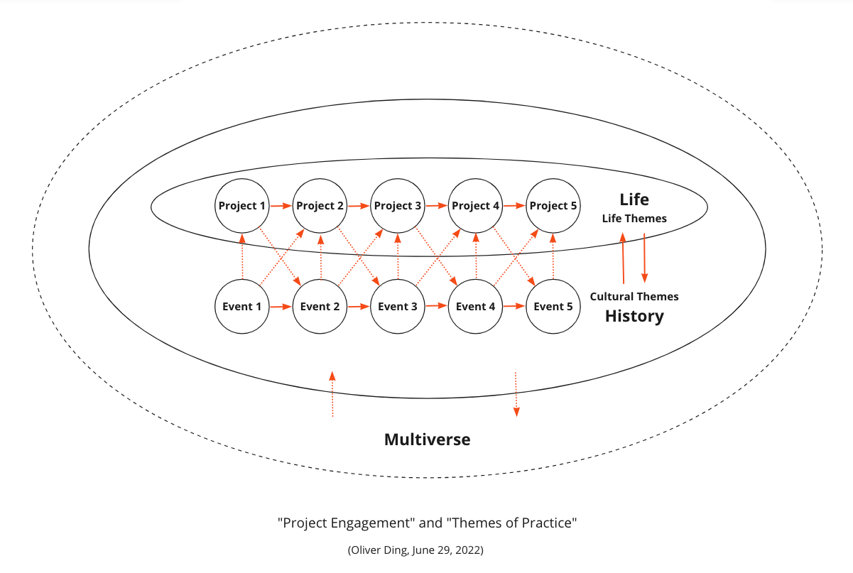 While Life is a chain of projects, it can also be understood as a journey of moving between various thematic spaces. Each project has primary themes as well as secondary themes. By joining and leaving projects, we enact our significant Life Themes. In this sense, projects themselves can also be understood as Thematic Spaces.
