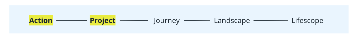 The “Birth — Death” dimension refers to the “alive” status of things. Actions and Activities are only “alive” when we are acting. At the end of an activity, the thing we worked on is produced. It’s done. It’s no longer alive. If we use it in a new activity, it becomes alive again.