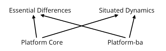 While Platform Core can be understood as a creative person's life themes and identity, Platform-ba can be understood as other people and related fields.