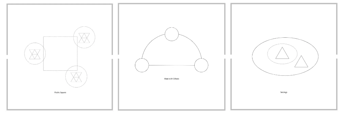 For each case, I select an existing map or design a new one to represent the social landscape or situational contexts relevant to the case. Inspired by the House of Project Engagement, I designed a series of “Houses” as thematic maps: