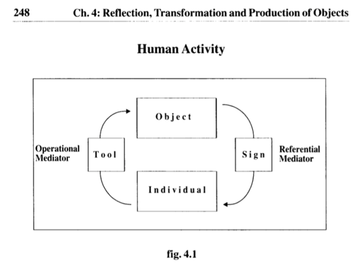 Karpatschof's approach to human activity considers both Tool and Sign. This approach echoes Lev Vygotsky's two types of mediating tools — technological tools and psychological tools — which is precisely why it captured my attention.