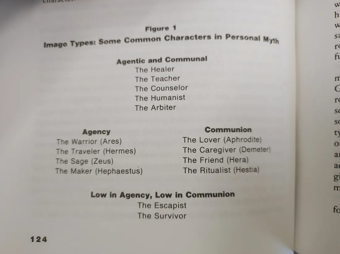 McAdams used the dimensions of agency and communion to categorize Imago types, as they represent two central themes in stories and personal myths.