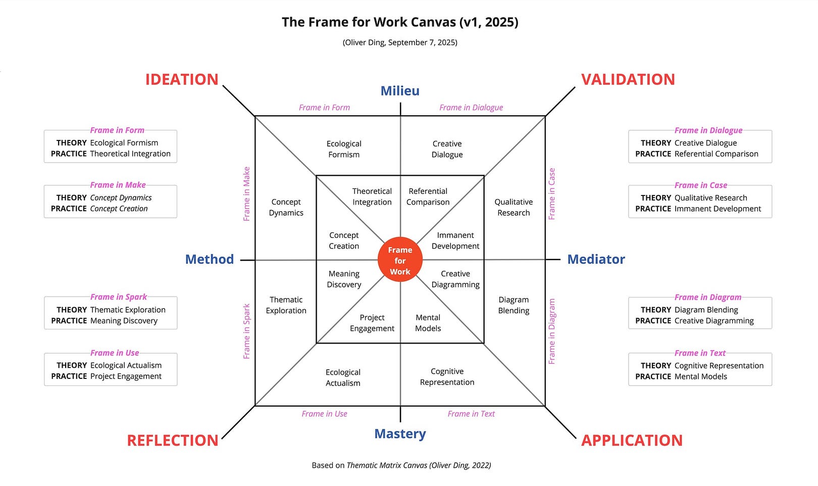The new canvas goes beyond the original focus of the 2024 book — Knowledge Frameworks — and extends the metaphor of the “Frame” to a broader object: Cultural Frameworks. This expansion aligns with my shift from Knowledge Engagement to Cultural Innovation, a key transition I made in late 2024 and early 2025.