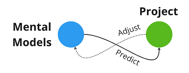The above diagram connects Mental Models with a Project, showing how Mental Models function as Predictive Models of Projects.