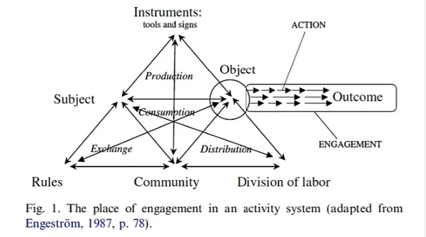 - The Activity System Model (Yrjö Engeström,1987): Subject — Outcome.