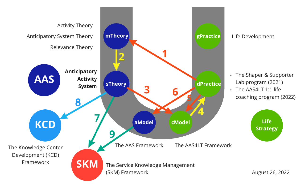 I adopted the Anticipatory System Theory as the primary theoretical resource and used a meta-diagram to develop the early version of the AAS framework. See the diagram below.
