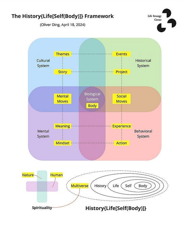 Two days later, building on the Life (Self) Framework, I developed version 1.0 of the History[Life(Self)] Framework. See the diagram below.