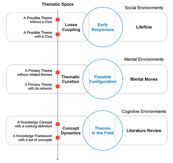 From my experience in developing knowledge frameworks and cultivating tacit knowledge in general, I have observed a consistent tendency for themes to evolve into concepts. The Strategic Thematic Exploration Framework represents a linear process of "From Theme to Framework," consisting of the following six stages: